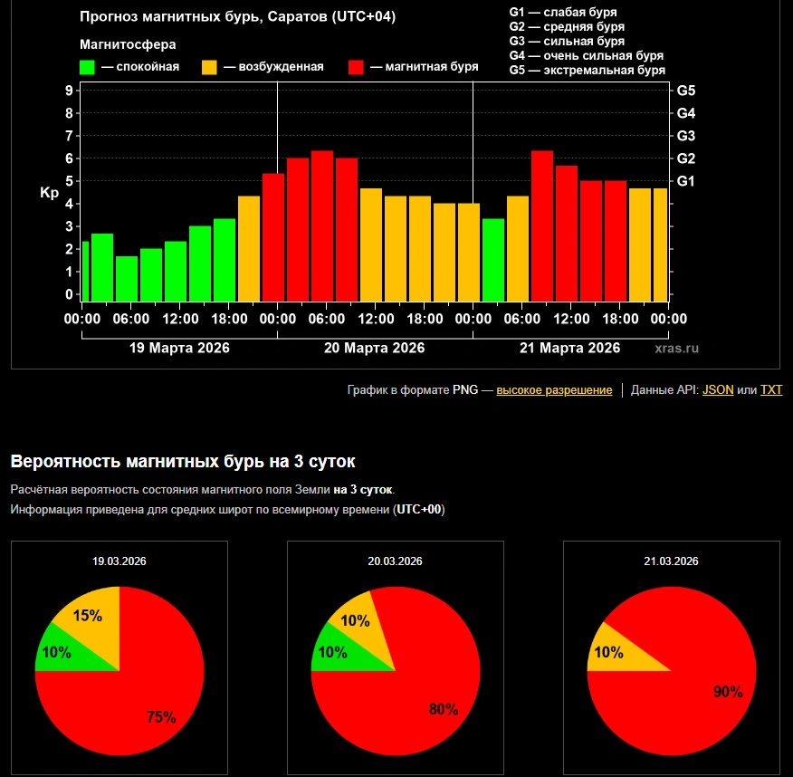 Как сообщает Лаборатория солнечной астрономии ИКИ и ИСЭФ, первая из затяжных магнитных бурь ударит по нашей планете уже сегодня, 19 марта, примерно в 22:00 (время саратовское). Она пройдет четырьмя волнами, которые постепенно будут увеличивать свою силу, и закончится около 10:00 на следующий день, 20 марта. Последствия от нее в виде магнитосферных возбуждений продлятся до полуночи, а на следующий день, по прогнозам астрономов, Землю охватит еще одна затяжная магнитная буря.