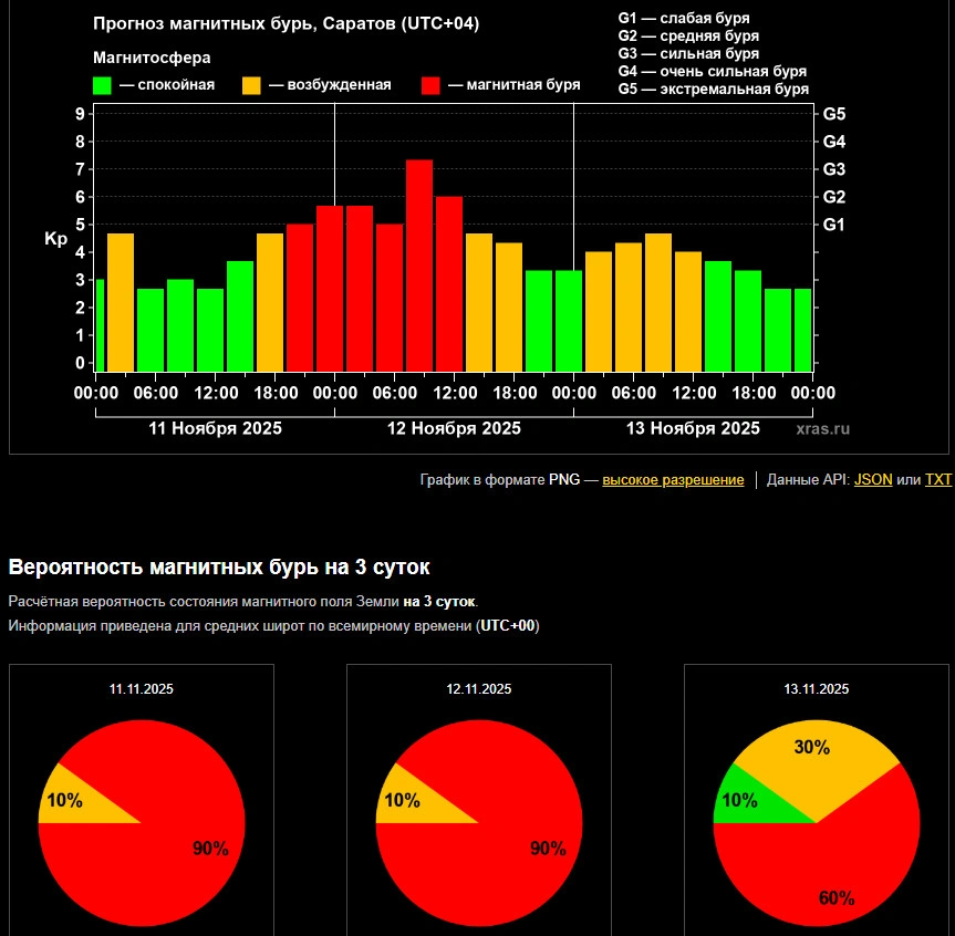 Как сообщает Лаборатория солнечной астрономии ИКИ и ИСЭФ, магнитосферные возмущения на нашей планете начнутся сегодня, 11 ноября, около 16 часов (время саратовское), а к 19 часам они перерастут в полноценную магнитную бурю. Это явление будет только усиливаться, и к 22 часам достигнет нового класса мощности.
