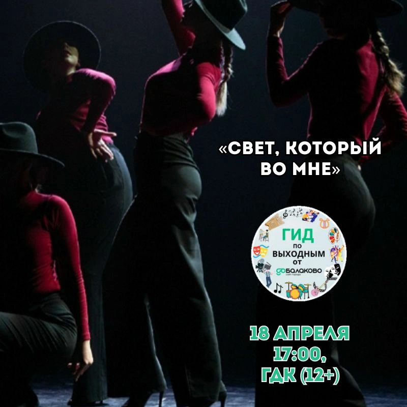Балаковцев приглашают на яркое выступление ансамбля народного танца «Радуга». На этот раз в программе гимн творчеству и танцу. Через танец артисты подарят зрителям понимание того, что свет внутри каждого становится ярче, когда все вместе.