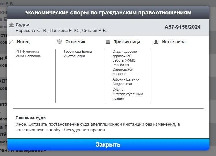 Более витиевато и непредсказуемо, повел себя главный виновник торжества Евгений Афонин. Поначалу, понимая, что действительно совершил профессионально неэтичный поступок, подвергнув меня всяческой дискредитации, вынудив участвовать в судебных разбирательствах, он повел себя достойно и оплатил услуги моего адвоката в суде первой инстанции. Однако, к середине судебного процесса, который продолжался 10 судебных заседаний с мая по декабрь 2024 года (и это только первая инстанция!), Евгений Афонин, видимо, понял, что, если я проиграю, то, по сути, буду иметь право предъявить к нему свои убытки. Полагаю, что именно это толкнуло его в объятия ИП Чумичкиной И.П. и ее представителя, которые решили, что у них есть теперь главный козырь – свидетель «обвинения» Е. Афонин собственной персоной, который был привезен ими в очередное судебное заседание для свидетельствования в пользу автора исключительно творческих текстов, легко и непринужденно «позаимствованных» последним, и в расчете на то, что уж с его-то показаниями степень убойность аргументации обиженного обладателя интеллектуальных прав повыситься беспредельно.