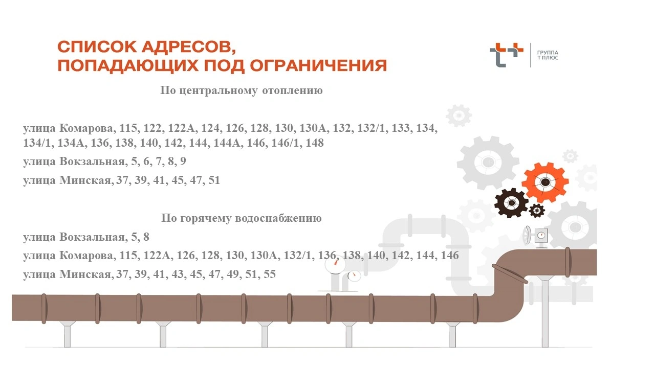 Об этом теплоэнергетики сообщили на своих интернет-ресурсах. По информации «Т Плюс», сегодня, 28 октября, сотрудники компании проведут ремонт задвижки в тепловой камере на улице Комарова. В связи с этим, до конца суток без тепла и горячей воды останутся более 20 многоквартирных домов на Комарова, Минской и Вокзальной.