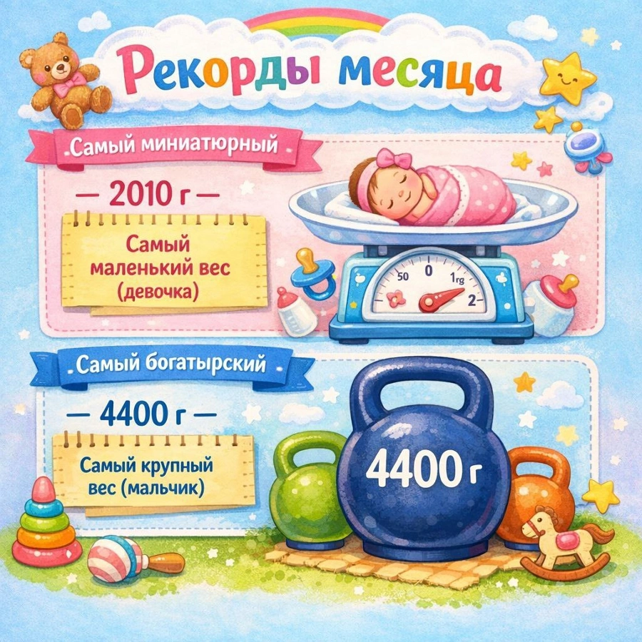 Как сообщает Балаковская городская клиническая больница (БГКБ), в декабре 2025 года в перинатальном центре родилось 82 малыша: 45 мальчиков и 37 девочек. Самая миниатюрная малышка появилась на свет весом всего 2010 грамм, а самым крупным новорожденным стал крепыш весом 4400 грамм. Возраст рожениц колебался от 16 до 39 лет.