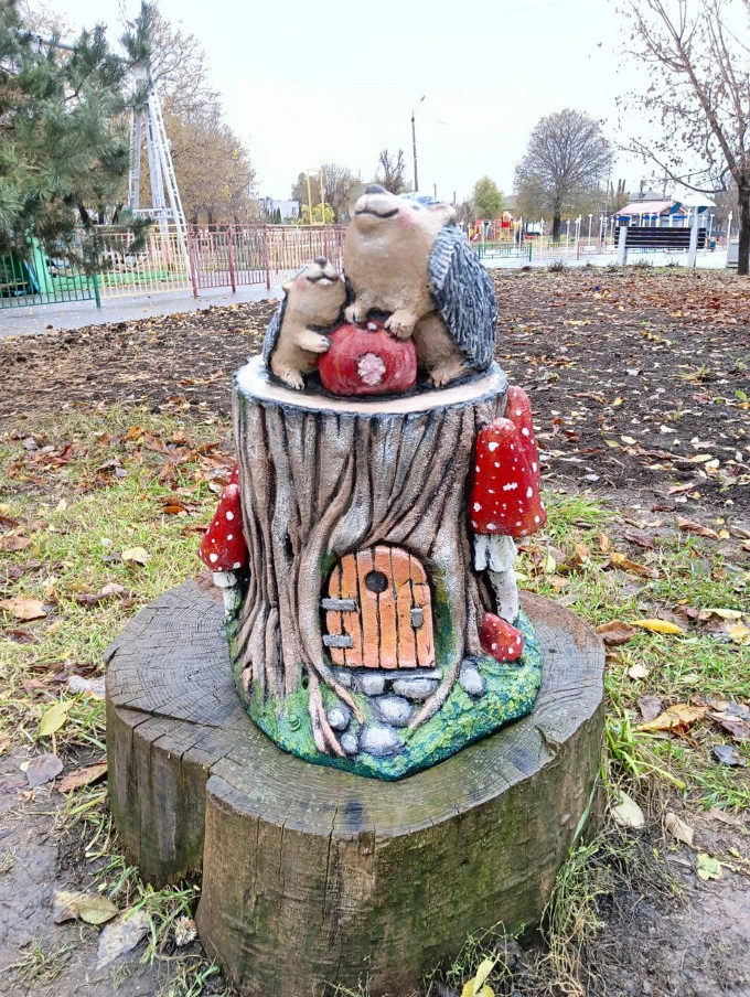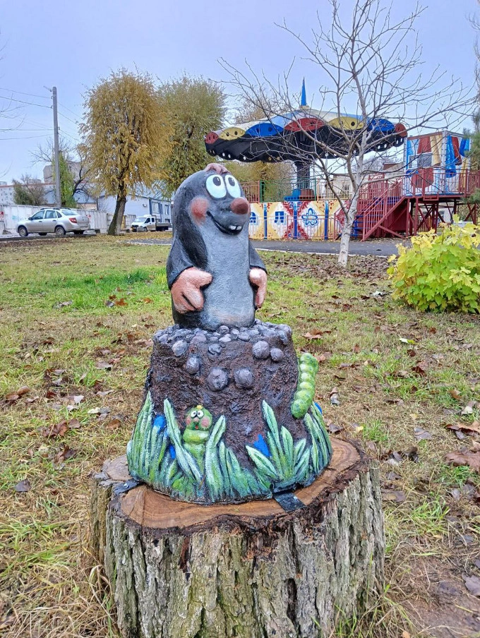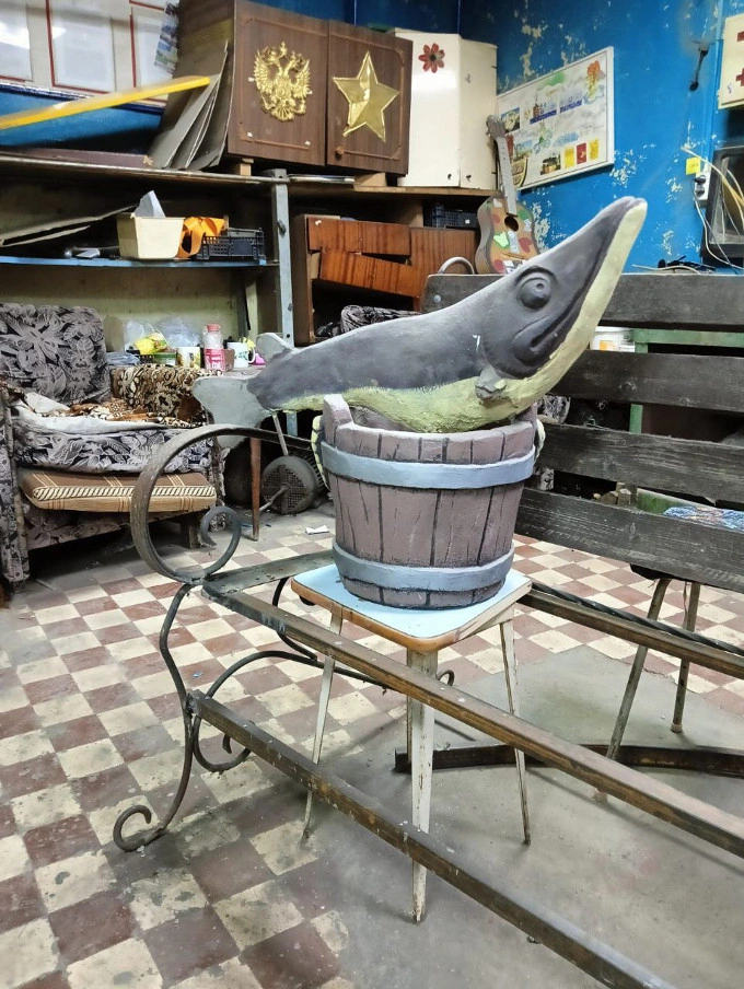 И мастер продолжает творить. Совсем недавно в Детском парке поселились новые сказочные персонажи – осенние ежики и Кротик из чешского мультфильма «Приключения Крота», а Елена Малькова теперь работает над новой скульптурной композицией по мотивам сказки «По щучьему веленью». Сейчас ведется лепка начального слоя скульптуры Емели. Щука в ведре уже готова, прогрунтована и ждет дальнейшей покраски в несколько слоев. Эти сказочные герои переедут в Детский парк весной следующего года, как только позволят погодные условия.