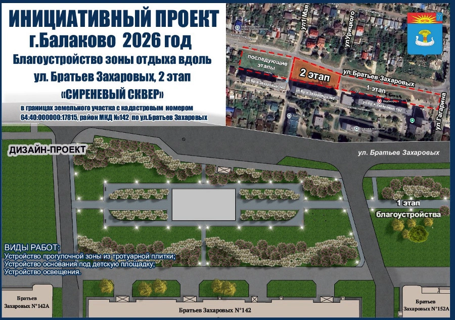 Как сообщает пресс-служба администрации Балаковского района, к чиновникам поступил инициативный проект «Благоустройство зоны отдыха вдоль улицы Братьев Захаровых». Она получила название «Сиреневый сквер», и авторами выступают 5 человек под руководством депутата Натальи Бахаревой. Эта зона располагается со стороны многоквартирных домов №152, 142, 140, и 1 этап благоустройства при поддержке «ФосАгро» был завершен в текущем году. Второй планируют провести в 2026 году, и общая стоимость расходов на создание нового сквера составит 8 590 000 рублей.