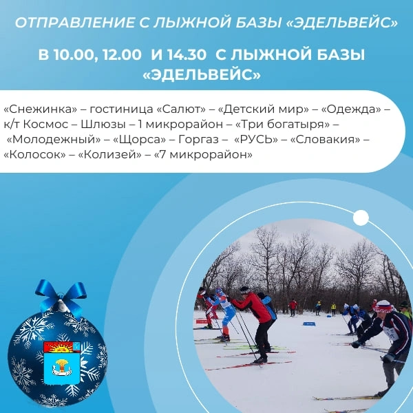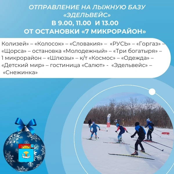 Как сообщает администрация Балаковского района, автобус № 147 «7 микрорайон – лыжная база «Эдельвейс» начал работать с 27 декабря, и будет курсировать в новогодние праздники по установленному расписанию. Стоимость проезда до «Эдельвейса» от конечной – 70 рублей, а от «Космоса» – 50 рублей. Ознакомиться с режимом работы лыжных баз, тарифами на предоставляемые услуги и расписанием автобусных маршрутов можно в карточках.