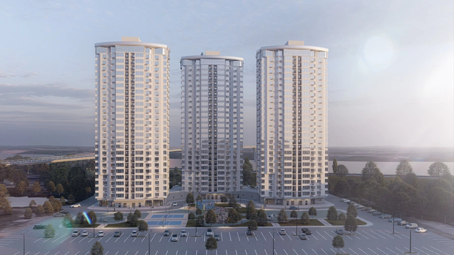 В проект самого высокого жилого комплекса в Балаково входят три монолитных 26-этажных дома с просторной парковкой на 551 место. На крыше центрального дома будет размещена автономная котельная, не зависящая от городских сетей.